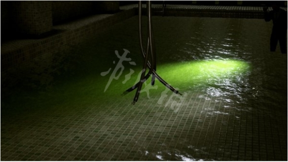 有個充滿罕見實體的大水池,使用在顛倒房間獲得的運動探測儀穿過水池。