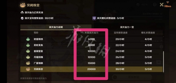 洞天仙力上限不是2w,2w是指達到洞天寶錢和同伴好感積攢速度最大值。達到2w後根據個人意願來選擇是否繼續疊仙力。