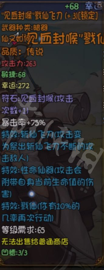 再刷一把融合了卡牌抽取+角色養成+寵物養成+寵物合成+暗黑類刷寶+爬塔+輕微肉鴿+符文之語等玩法的遊戲,如果你是一個喜歡刷寶玩家千萬不要錯過。下面小編就帶來再刷一把戮仙飛刀合成材料介紹,一起來看看吧。