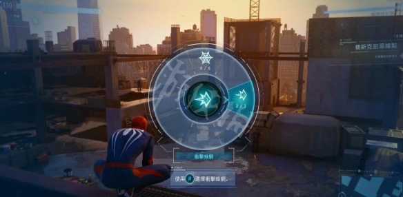 這套戰衣需要完成任務費斯克犯罪據點才能解鎖,打開裝置選擇盤,選擇衝擊蛛網。後面的游戲中還能獲得多種不同的裝置來豐富戰斗方式。
