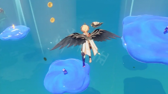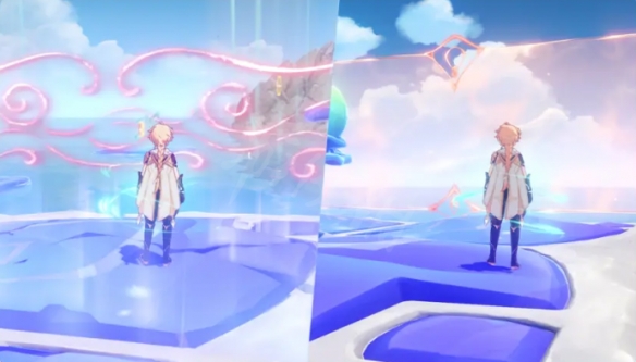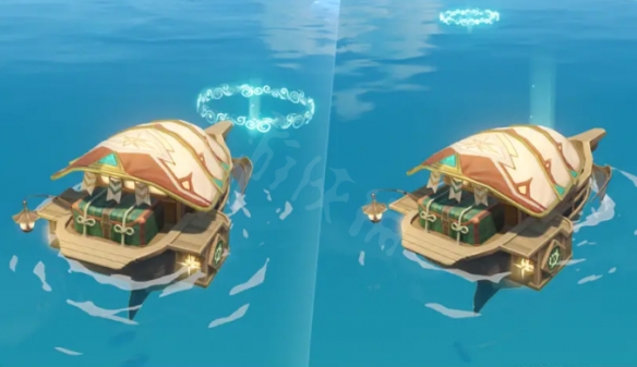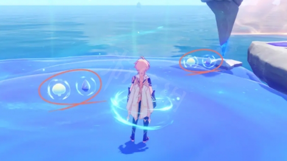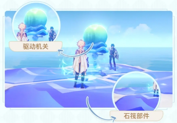 拾取「修復部件」和「飄曳能量」,修復石筏及補充機關所需的能量。此時旅行者需要停留在石筏上;