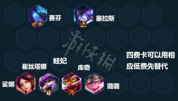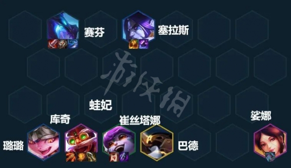 塞拉斯可以和賽芬開出4幽影2格鬥的羈絆,一般做傳送門給塞拉斯最好,給賽芬和飛機拖輸出時間,用於前期連勝的日炎、狂徒、板甲、傳送門都是可選擇的裝備,有裝備就立即合成提升即時戰力。