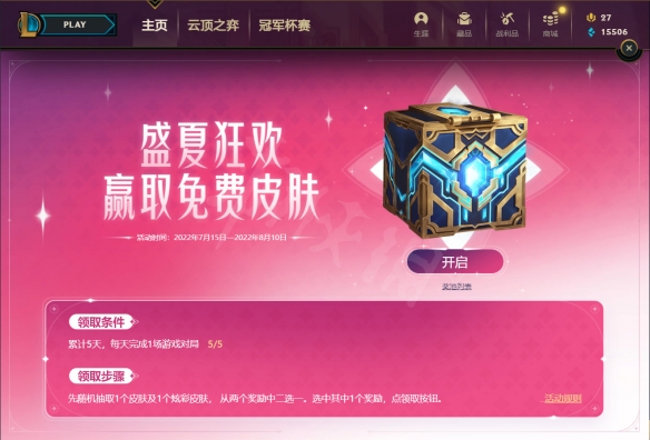 以上就是英雄聯盟盛夏狂歡活動入口的內容了,更多遊戲相關資訊攻略請關注,我們將會第一時間更新最全的內容幫助大家了解該遊戲,一起來看一下吧。