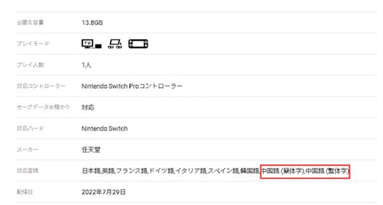 按照官方給出的顯示結果《異度之刃3》支持官方中文,並且為全區中文。