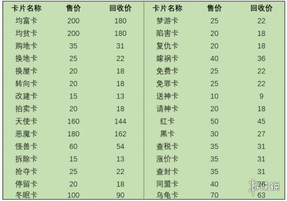 以上就是關於大富翁4卡片道具售價與回收價格一覽的相關分享,希望對大家游戲有幫助,感興趣的玩家可以前往steam平台看下網友的評價。