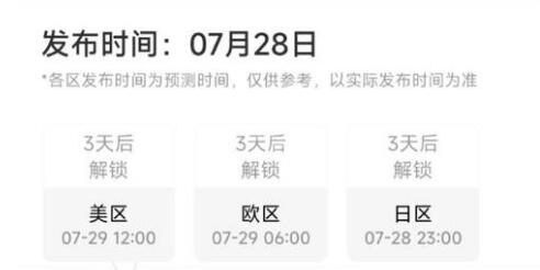 日服是28號晚上十一點,港服晚一小時,美服29號早上,歐服是最晚的要晚上了,澳服比日服還早兩個小時。