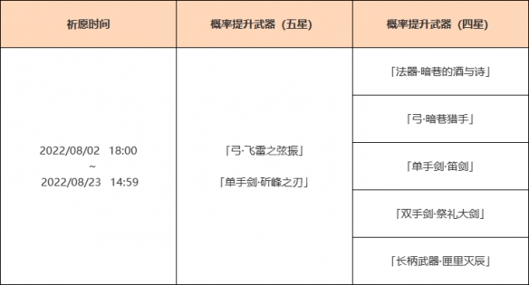 ●活動期間,限定五星武器「弓·飛雷之弦振」「單手劍·斫峰之刃」的祈願獲取概率將大幅提升。