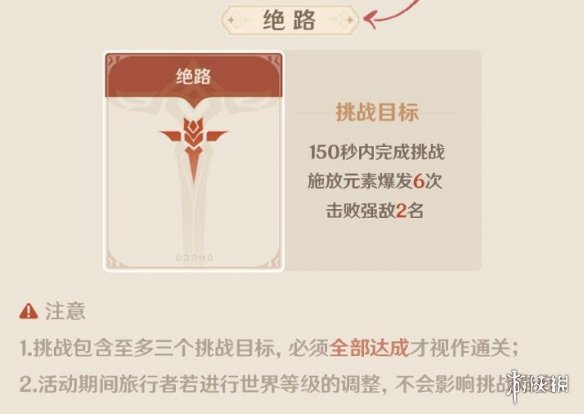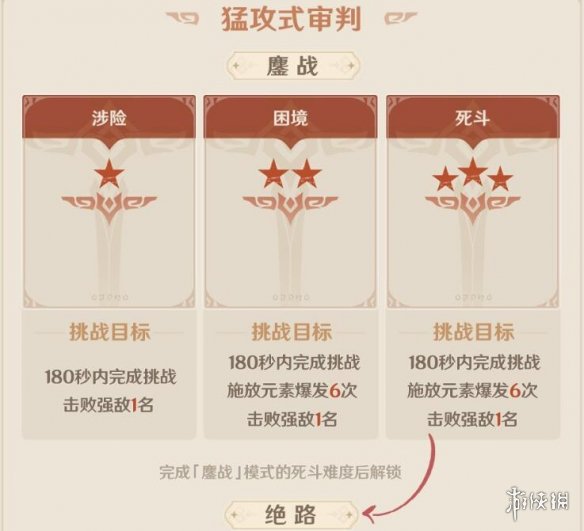 每場挑戰包含「鏖戰」和「絕路」兩種模式。