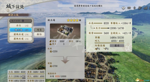 如果2灌溉+ 1米行+1練兵,雖然兵少了2千,但兵糧庫多了很多,對於常出戰的城是最好的選擇。