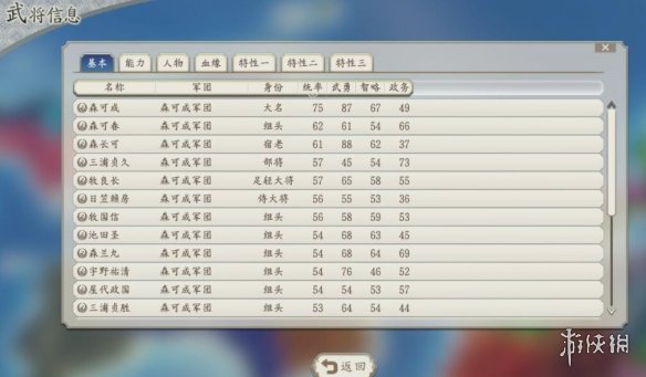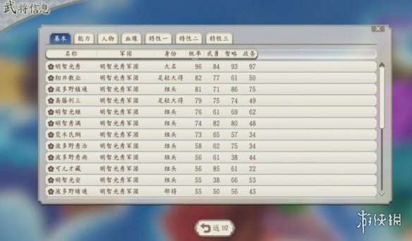 和前作一樣,佐久間信盛仍然是外姓第一大將。當然這是由於織田的強力武將都分出去了,不是織田自己的問題。