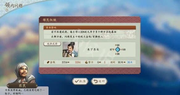 歉收:在7月發生,石高暫時減少。軍糧收入和兵力受到影響。