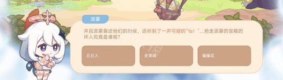 以上就是原神搶走派蒙寶箱的壞人答案的內容了,更多游戲相關資訊攻略請關注遊俠網,我們將會第一時間更新最全的內容幫助大家了解該游戲,一起來看一下吧。