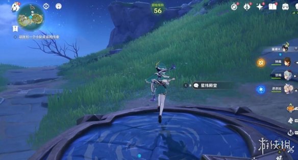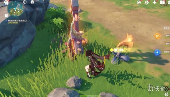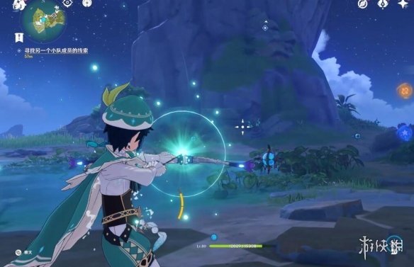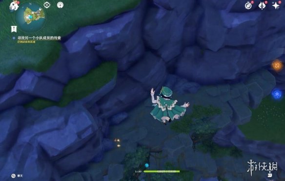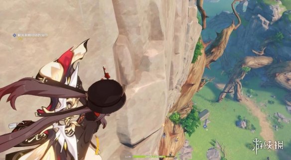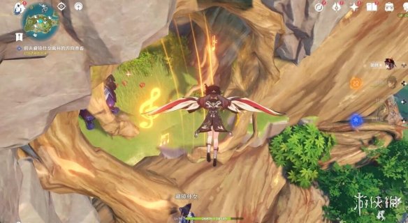 切換完,任務下方就顯示剩餘多少米了,前方有個風元素方碑,點亮它,跟隨產生的風場,飛上去。