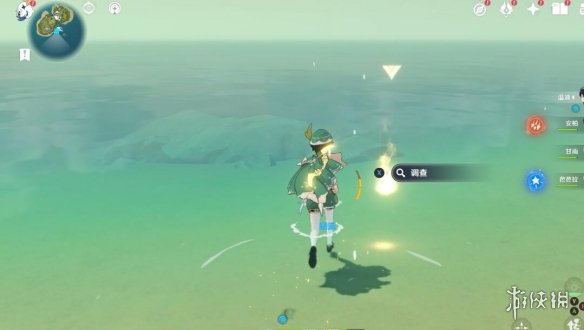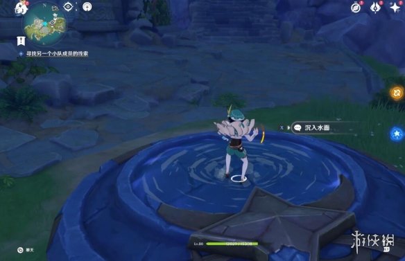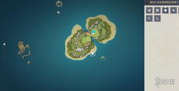 首先要觀察此島的狀態對不對,瞅左上角的任務追蹤有沒有顯示距離,沒有的話就證明是錯的,這時候走到上圖雞腿標記處,點擊沉入水面,切換形態。