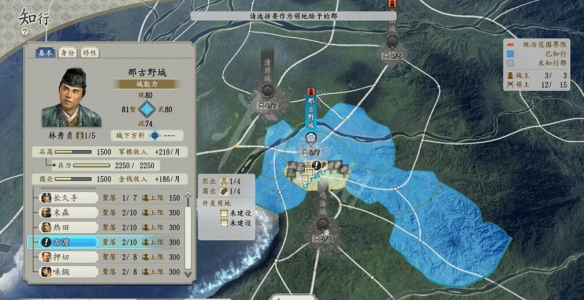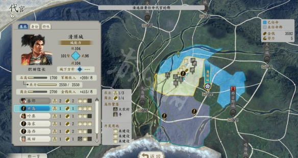 注意除了根據地外,其它城郡都需要任命家臣才能經營發展,因此就算玩家地盤在大,缺人也是發展不好的。