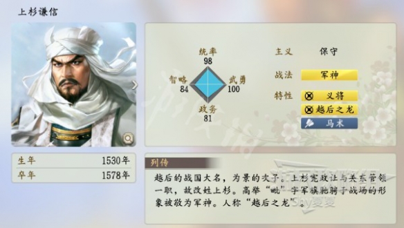 以上就是信長之野望新生上杉謙信武將數據分享的內容了,更多游戲相關資訊攻略請關注遊俠網,我們將會第一時間更新最全的內容幫助大家了解該游戲,一起來看一下吧。