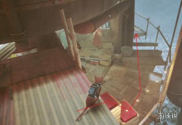來到打麻將這,可以看到有一個鐵桶電梯,坐電梯下去。