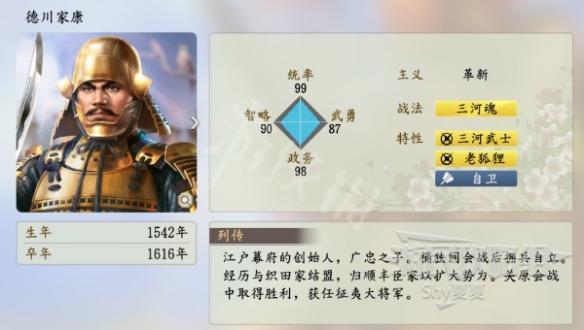 以上就是信長之野望新生德川家康屬性介紹的內容了,更多游戲相關資訊攻略請關注遊俠網,我們將會第一時間更新最全的內容幫助大家了解該游戲,一起來看一下吧。