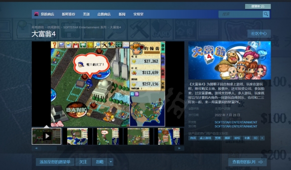以上就是關於大富翁4steam在哪購買的相關介紹,想要體驗pc版本的玩家可以多多關注下遊戲,希望對大家遊戲有幫助。
