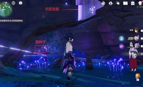 鳥居右側雷屏障裡面後面還有一個華麗的寶箱、一個普通寶箱,和鏽蝕的鑰匙(用於開後續任務的鎖)。