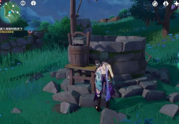 根據定位找到一個井,用鑰匙把井打開,進入紺田村的井下。
