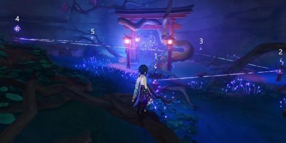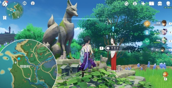 觸發點:傳送錨點到稻妻·紺田村上方附近的天狐像前,與???(面具怪)對話觸發。