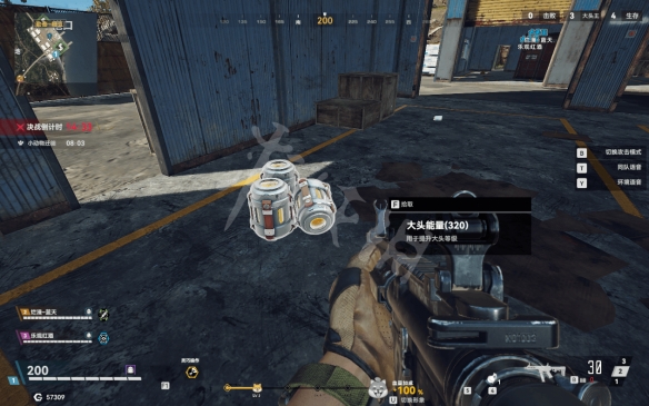 等待結束進入飛機跳傘階段,玩家可自由選擇降落地點,落地後在場景內搜集彈藥、藥品、背包、金錢等物資以及大頭能量。