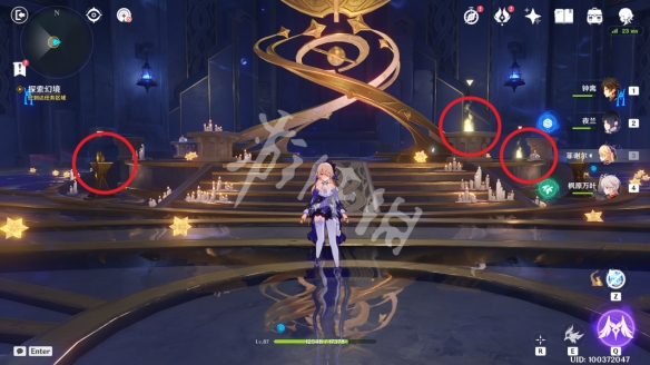 1,我們先進入秘境來到中心的水池旁,把這三個任務道具撿了先