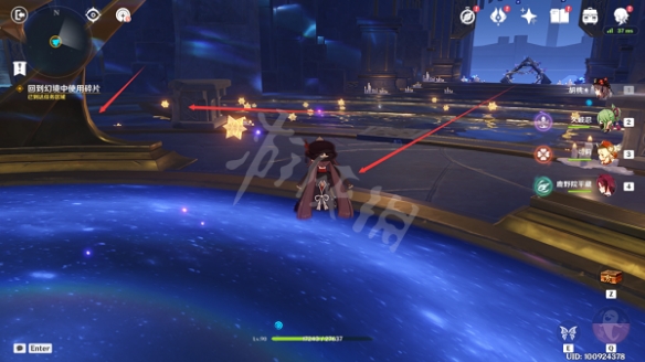 1.進入秘境後,直走進入中心水池,面向來的方向,往左手邊走
