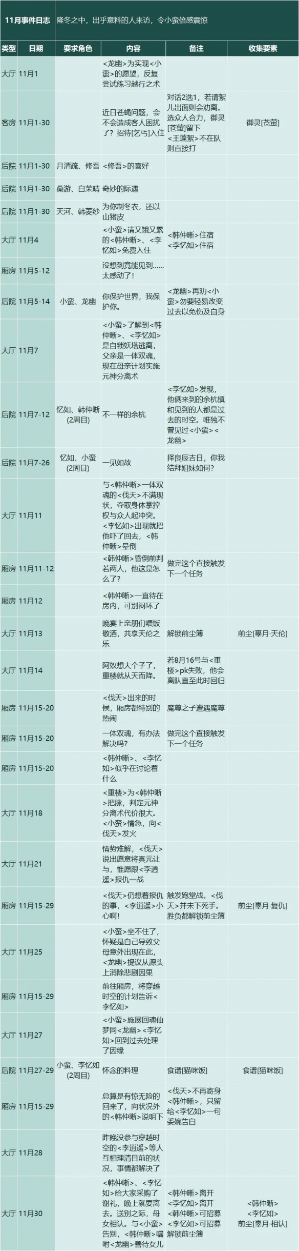 以上就是仙劍客棧2十一月事件日誌介紹的內容了,更多遊戲相關資訊攻略請關注,我們將會第一時間更新最全的內容幫助大家了解該遊戲,一起來看一下吧。