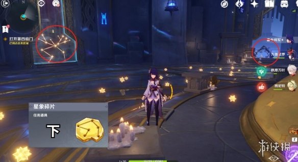 3.接星象的謎題,謎底在有屏障的門裡,如圖所示,直接抄答案。