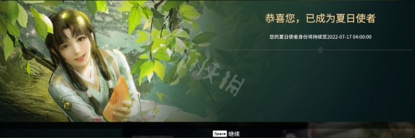 2.有些玩家在活動中會有【夏日使者】的身份,有【夏日使者】身份的玩家每天登錄即可獲得【禮品瓜】。夏季使者身份每周四04:00重置。