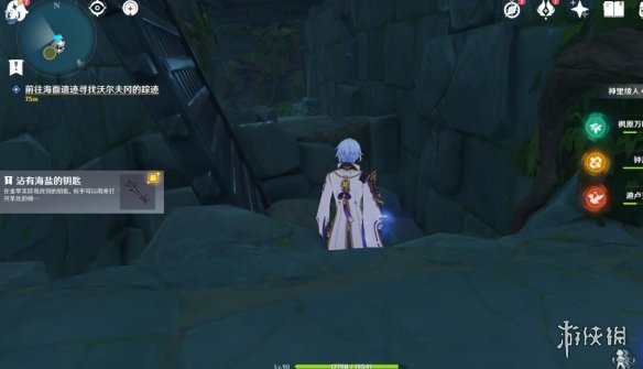 7.進入小口打破假石,再點擊調查點可獲得一把沾有海鹽的鑰匙。