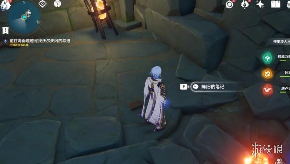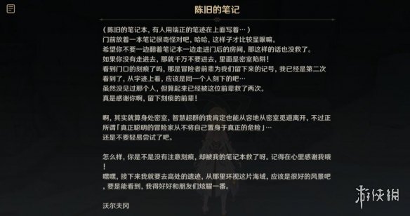 來到圖中的位置,可以看見地上有一本陳舊的筆記。