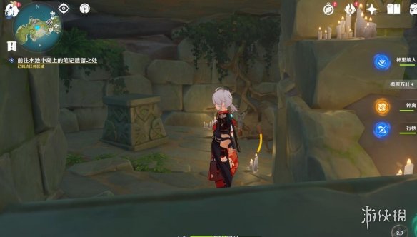 10.先用風元素吹散雷元素,再用元素視野查看順序,之後刻字,再進入水池。