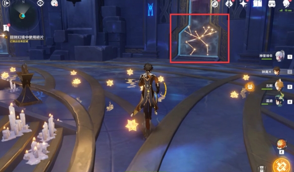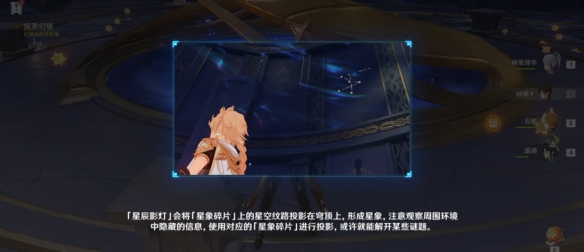 接著我們找到這個有箭頭指著的星辰影燈處裝入星象碎片,打開屏障進入房間。