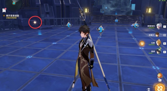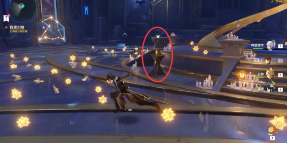 根據劇情的任務對話提示,今天的秘境是屬於莫娜的占星術士秘境,在找到一個占星術的星星一樣的圖標之後進入秘境。