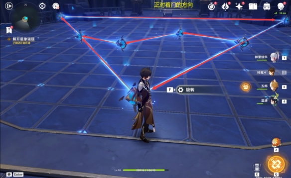 根據頭頂上星圖的提示,我們將射燈調整到如下圖所示解開謎題拾取寶箱。