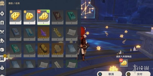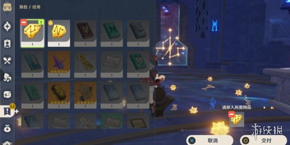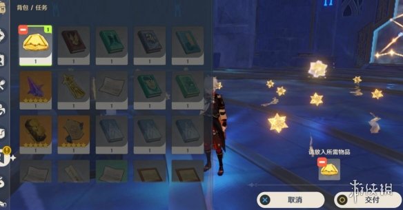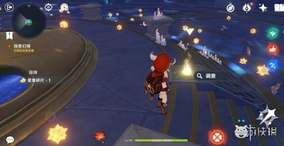 首次進入秘境,任務會提示我們進行探索,直接打開元素視野,調查所有光點,得到3塊星象碎片。