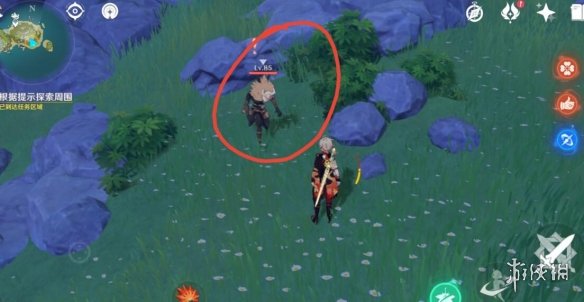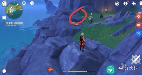 接著回到小島上,到達圖示地點,有一個正在挖土的丘丘人,他挖掘的地方就是我們要探索的點位。