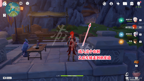 進入山洞後左轉,走到懸崖邊,場景如圖: