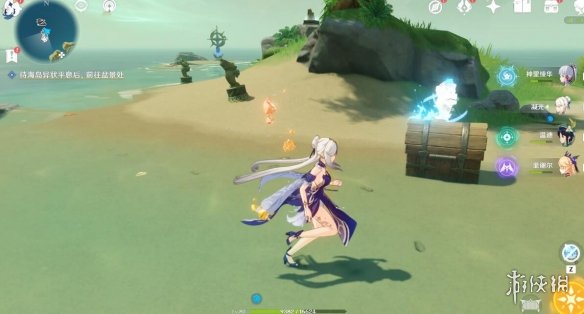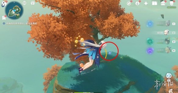 第七步:傳送過來就能看到仙靈,但需要在樹下染上【雷元素】通過雷櫻飛上去。