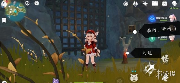 可見第四個火炬和一個拉閘,拉拉閘打開閘門。