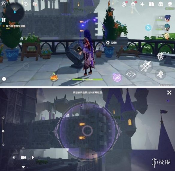 此處附近有旋轉開關,將城堡調整到如圖所示。