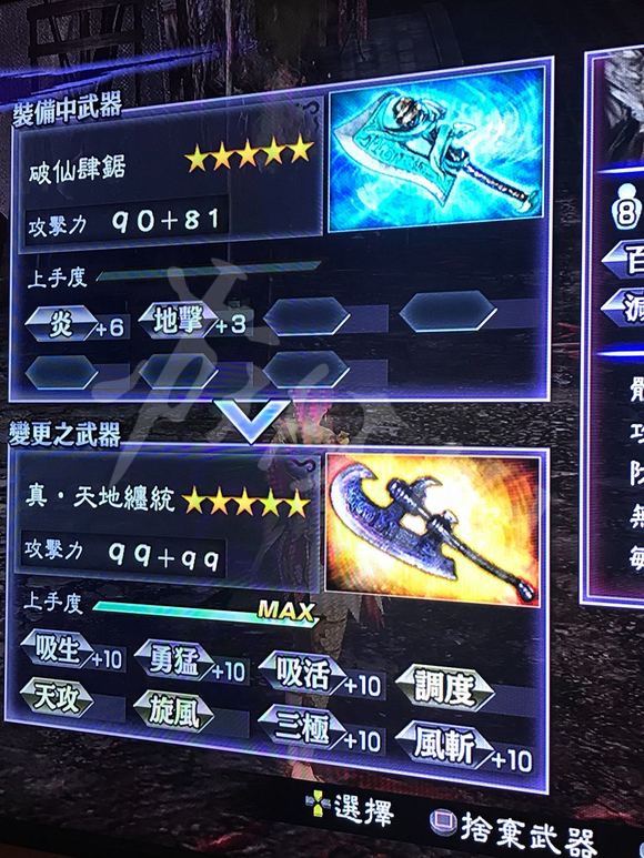 最強武器是真武,其次是仙武改。在無限模式里瘴氣難度較高的情況下可以迅速擊破帶有霸體的無雙武將,在故事模式里可以輕鬆的擊破一些無雙武將。剩下的還有四星武器、三星改、二星改和大星改等。