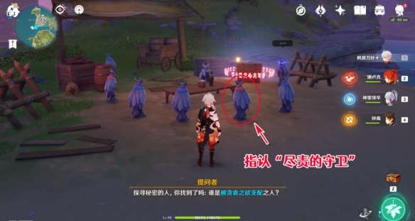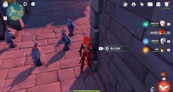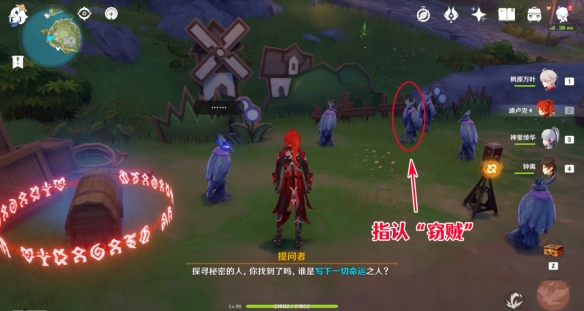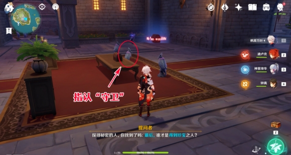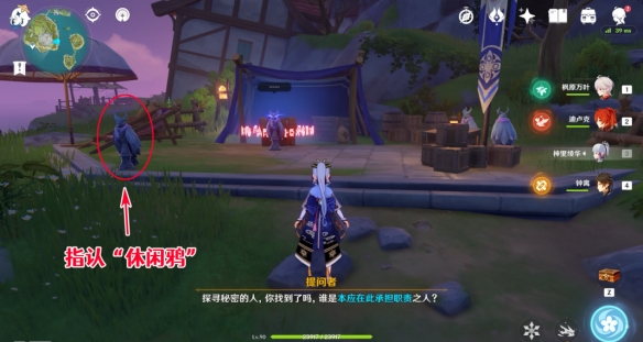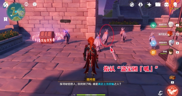 注意,這裡由於雕像們站的很近,直接過去選無法分辨出哪個選項對應哪個角色,很容易選錯,建議來我下圖的位置,貼著牆一點點挪到只能選到“盜寶團「呱」”的位置再進行指認。