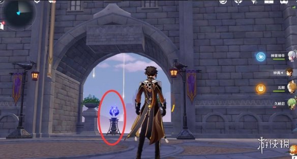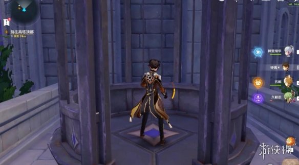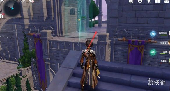 拼好之後我們沿著來時的路返回上層,沿著拼接好的道路繼續往前走,在幹掉門口的丘丘人之後,我們在復活點旁邊發現了一個電梯。