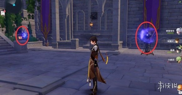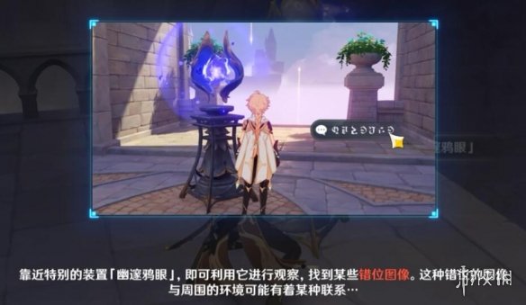 在經過一段劇情之後觸摸夜鴉雕像我們進入了幽夜凈土之中,進去之後我們會發現一個眼睛一樣的裝置,這個裝置將在本次秘境探索中起到很大的作用。