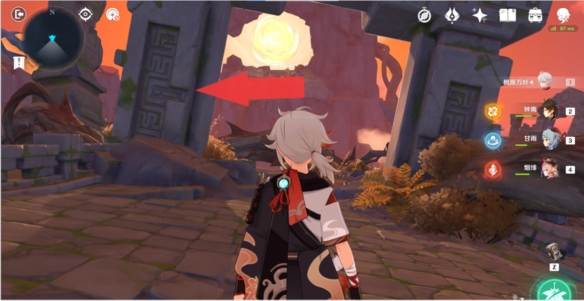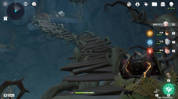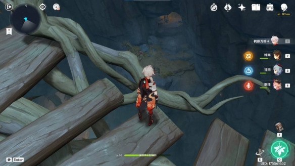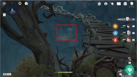 敲擊鼓之後出現一座橋,我們需要利用這座橋到達這個山洞裡面。