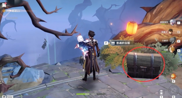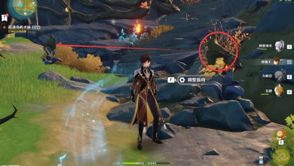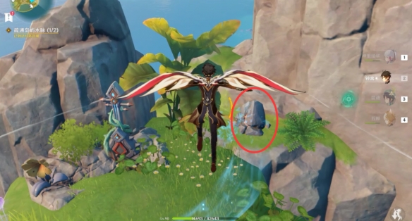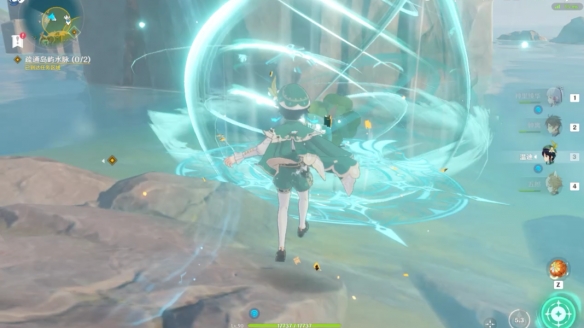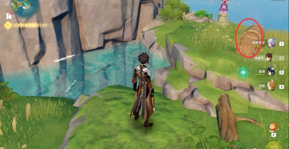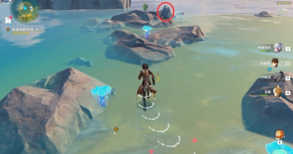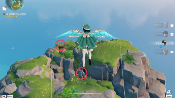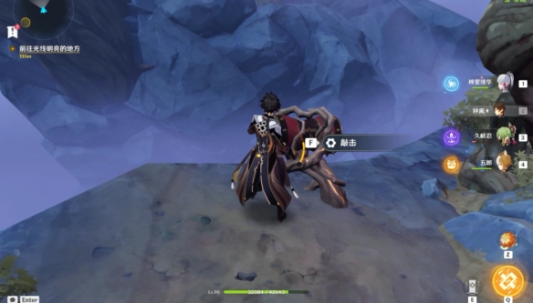 之後跟隨水脈指示的方向一路爬到山頂上,擊碎石塊拾取寶箱。